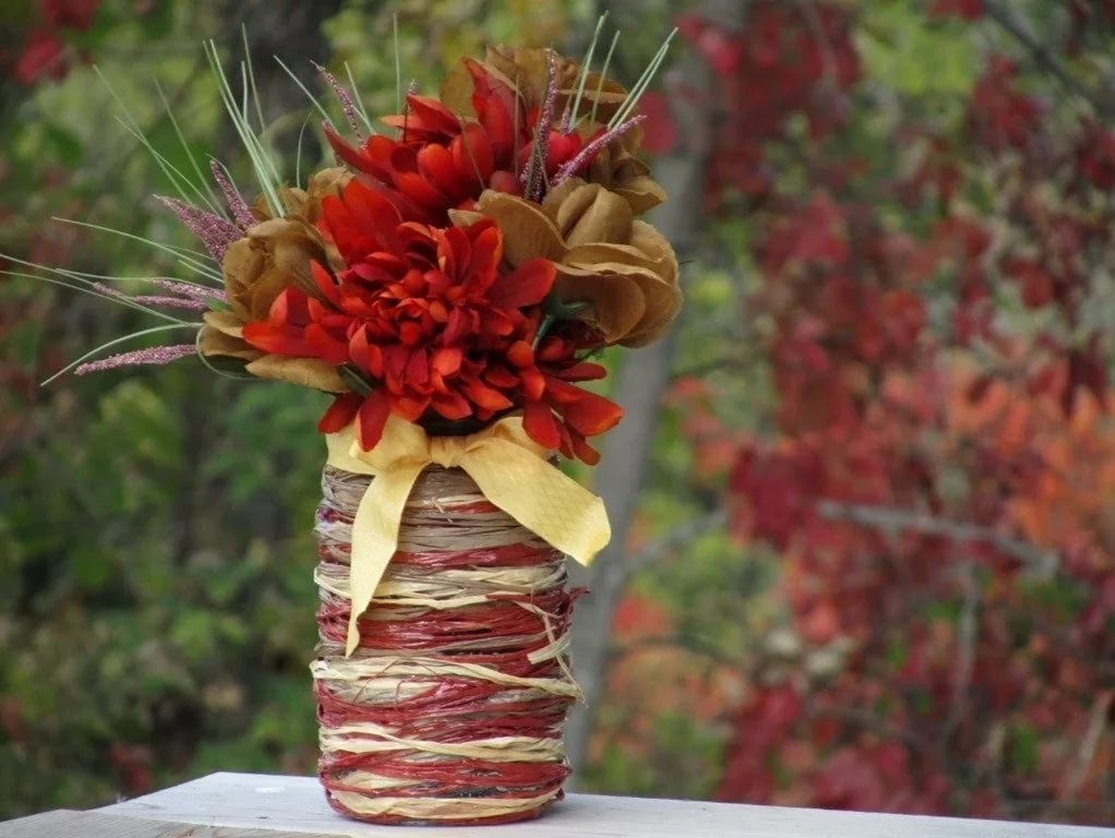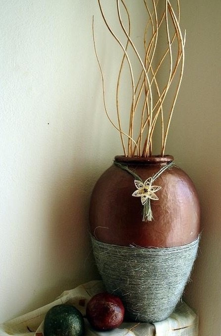 В доме обязательно найдутся материалы, которыми можно украсить вазу ручной работы. Проявив фантазию, получится создать уникальный шедевр. Эксклюзивная ваза станет настоящим украшением комнаты.