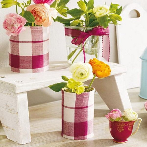 Благодаря этому способу вы можете сделать вазу любой ширины и высоты, экспериментируя с банками разных консервов.