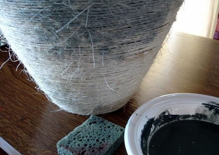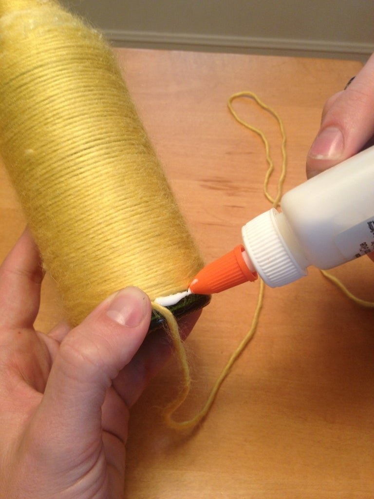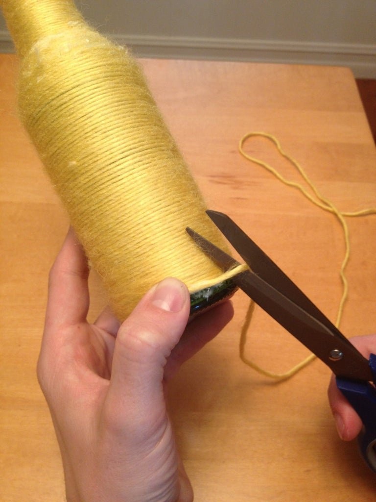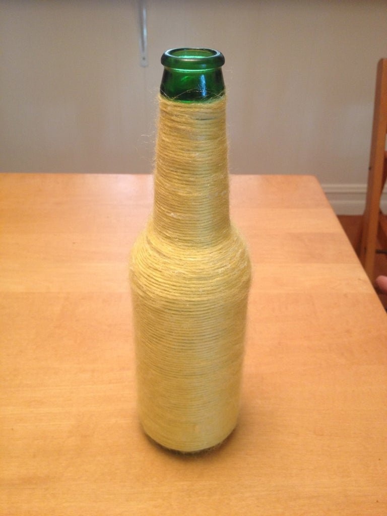 Если вы планируете использовать вазу для размещения цветов, после высыхания клея обязательно обработайте краской всю бутылку. Вы можете использовать обычный или аэрозольный состав. Он защитит окрашенную поверхность и нанесенный узор от влаги.