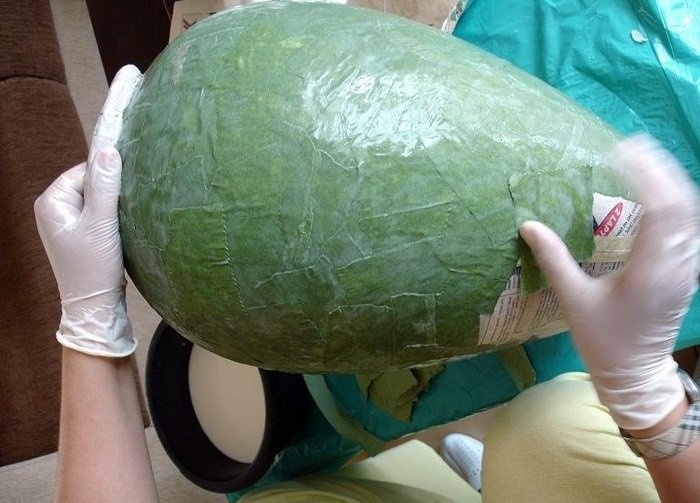 Когда повязка полностью высохнет, мяч протыкается и аккуратно удаляется