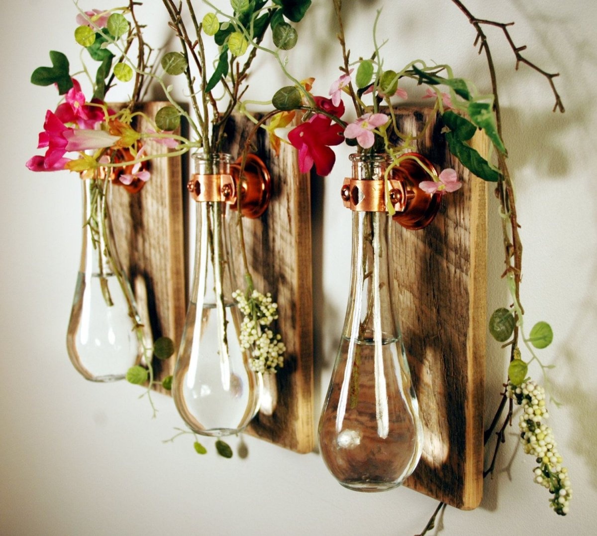 Стекло чаще всего используется как основа для вазы для цветов. Прекрасно удерживает жидкость, легко чистится и декорируется. Пластиковые емкости считаются более безопасными и дешевыми. Она вместе со стеклом служит отличной основой для воплощения самых смелых творческих идей.