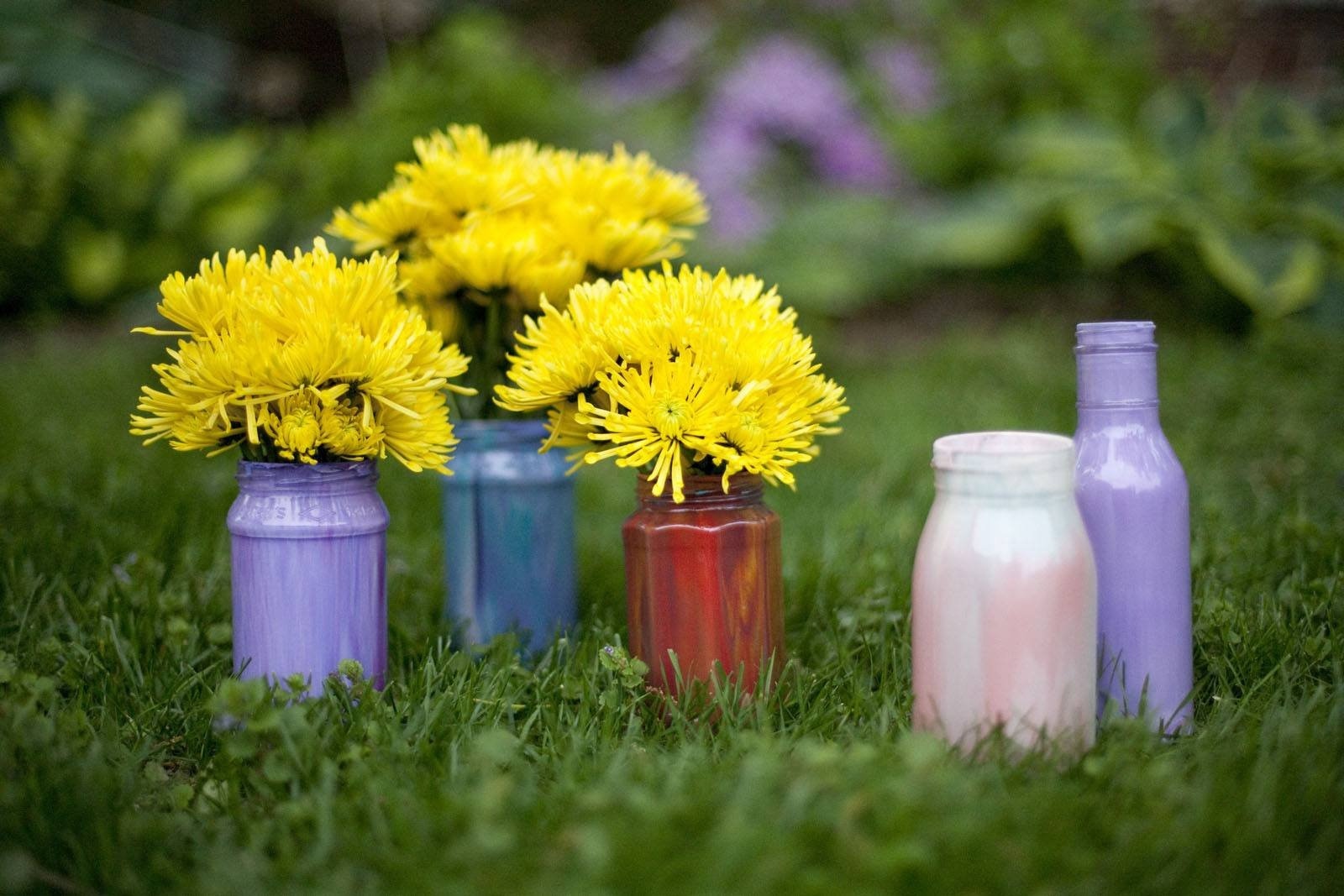 Использование красок способно кардинально преобразить, казалось бы, простые стеклянные вазы, превратить их в изящный и красивый вазон.